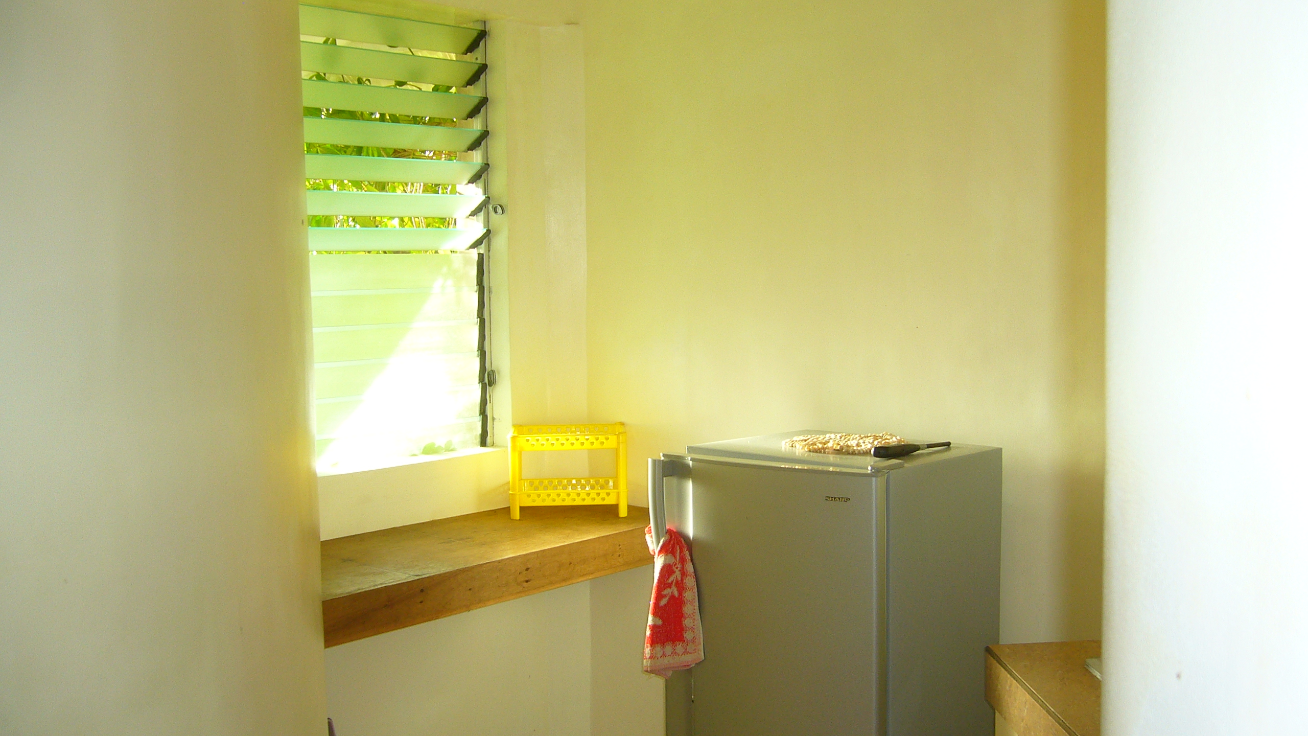 The Poolapartment is located between the First Floor South and East Apartment, consisting of the space behind the upper pool. It also has a kitchen and a small bathroom but due to its irregular shape of 21 m² only a 122 cm wide doublebed for 2 persons fits. The lower guest pool is in front of this Apartment. Both Apartment windows have oceanview. There is no Air conditioning but the airchannel that connects all Apartments of this level has an outlet on the rear of the house so the wind can go though. The central water heater is in this room and may be heard when in operation. Ideal for budget travellers who don´t want/need Aircondition but like oceanview. | ||||||||||||||||||||||||||||||||||||||||||||||||||||||||||||||||||||||||||||||||||||||||||||||||||||||