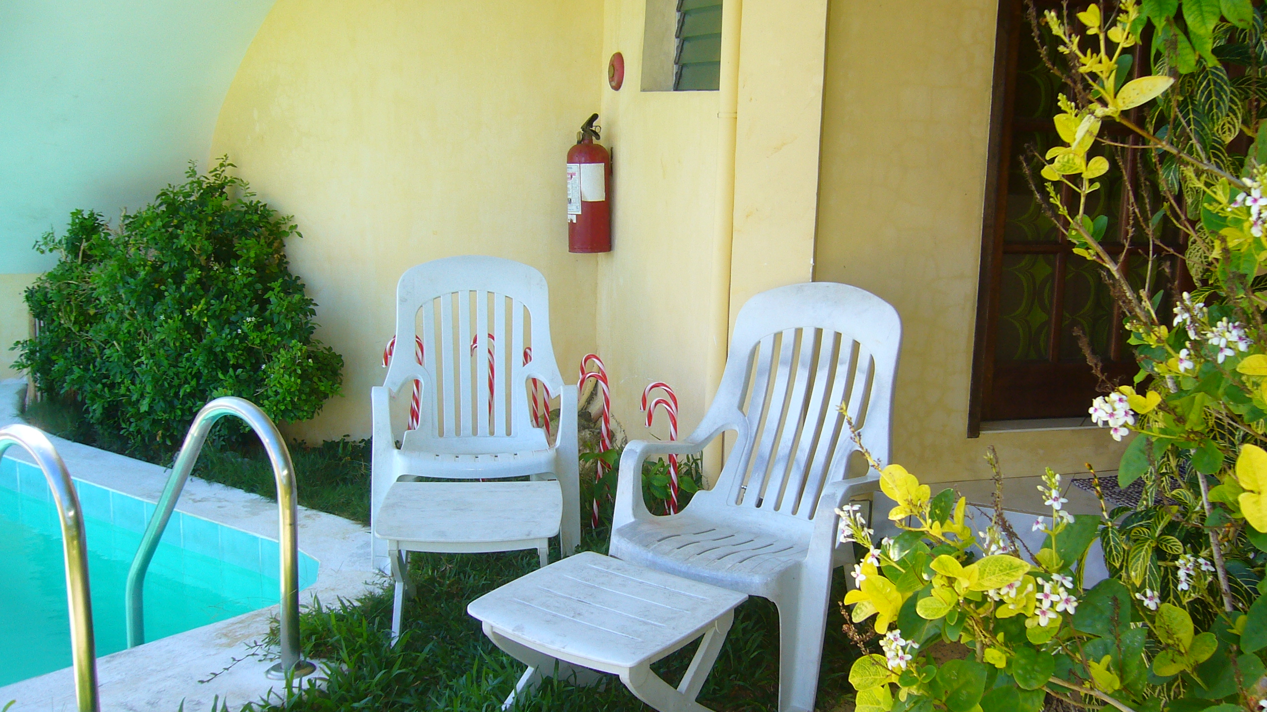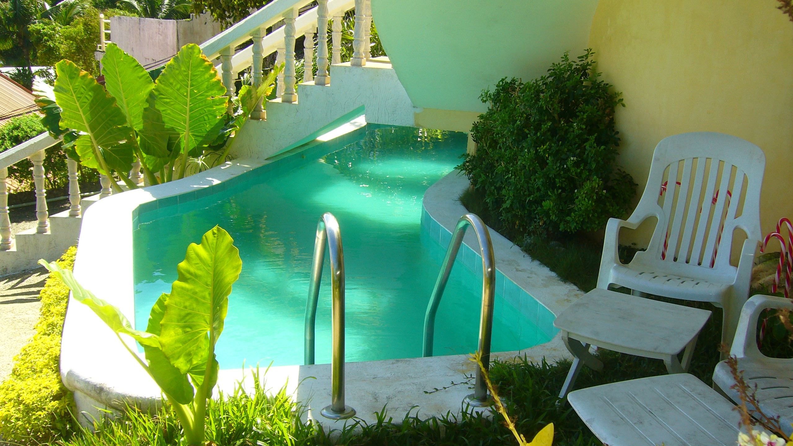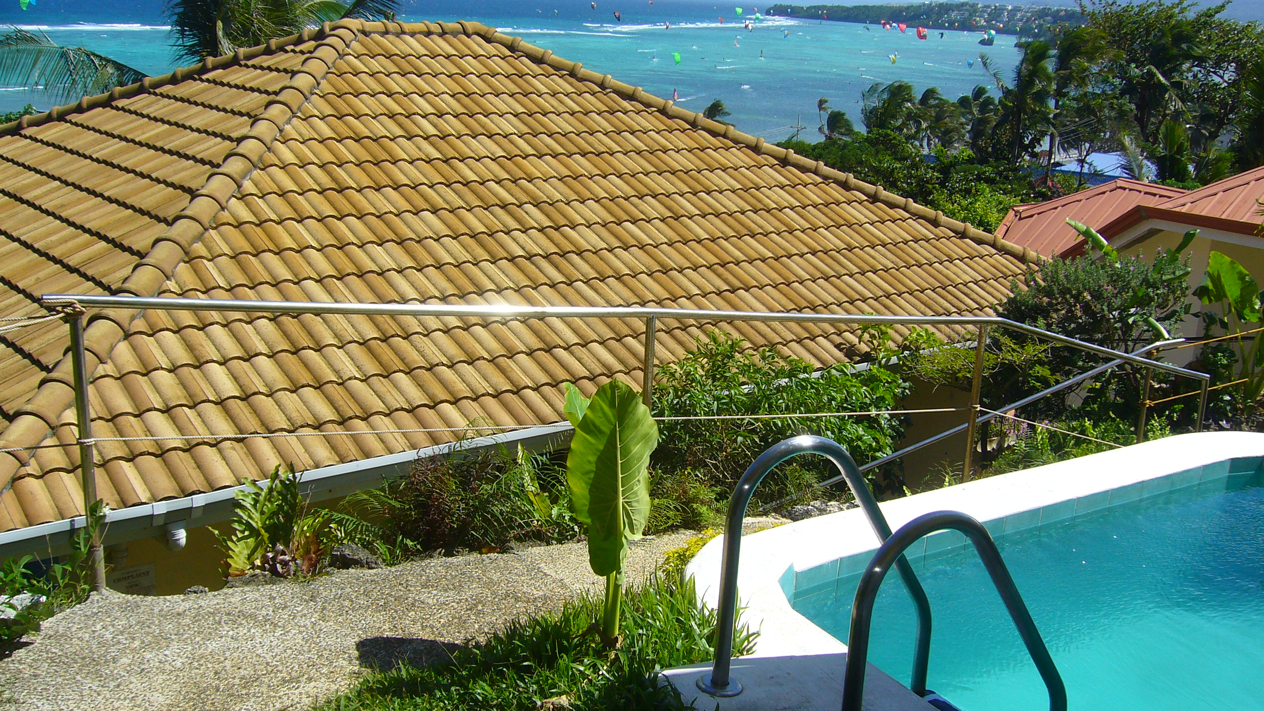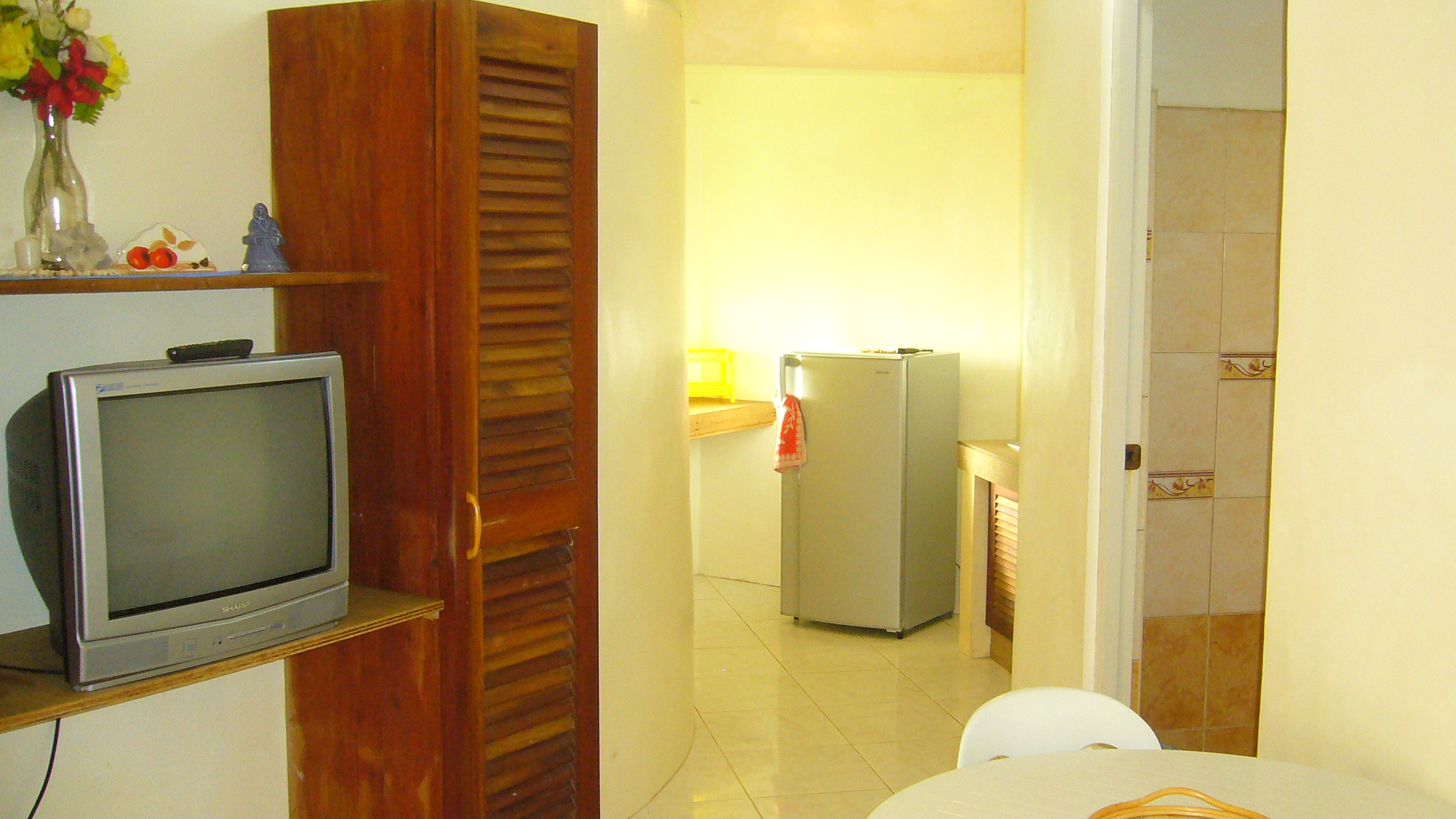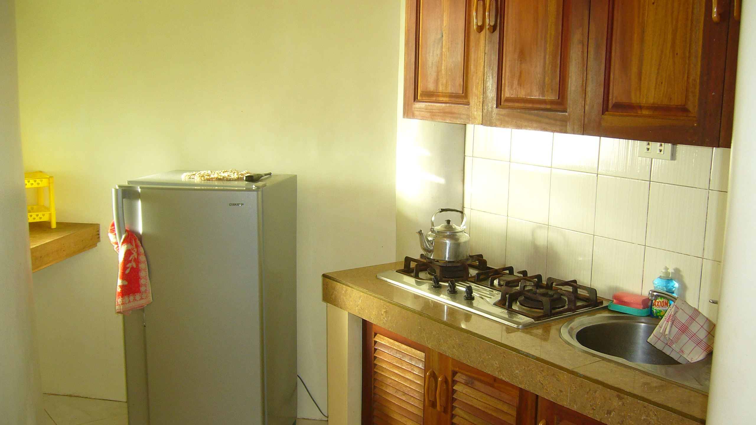 The Poolapartment is located between the First Floor South and East Apartment, consisting of the space behind the upper pool. It also has a kitchen and a small bathroom but due to its irregular shape of 21 m² only a 122 cm wide doublebed for 2 persons fits. The lower guest pool is in front of this Apartment. Both Apartment windows have oceanview. There is no Air conditioning but the airchannel that connects all Apartments of this level has an outlet on the rear of the house so the wind can go though. The central water heater is in this room and may be heard when in operation. Ideal for budget travellers who don´t want/need Aircondition but like oceanview. | ||||||||||||||||||||||||||||||||||||||||||||||||||||||||||||||||||||||||||||||||||||||||||||||||||||||