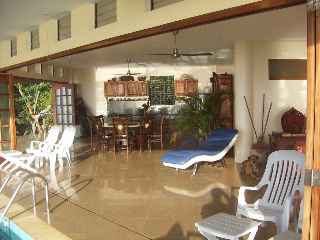 The second floor is the owners level. It is also made for living in the open like the other Apartments. It is 21 by 8 meters including the pool, the bathroom is 350 by 220 cm, the bedroom 600 by 370 cm and a walk-in closet 230 by 220 cm, a total of about 175 squaremeters. Nowwhere here Airconditioning is needed since everything is built so the wind can blow right through. And if you like the house and lot very much: you might even buy it for 1990000 Euro. | ||||||||||||||||||||||||||||||||||||||||||||||||||||||||||||||||||||||||||||||||||||||||||||||||||||||